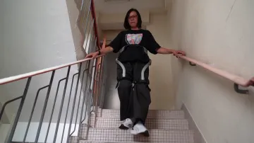 Obyvatelům vyhořelého bytového komplexu v Hongkongu pomáhají při vyzvedávání osobních věcí s překonáním pater robotické nohy